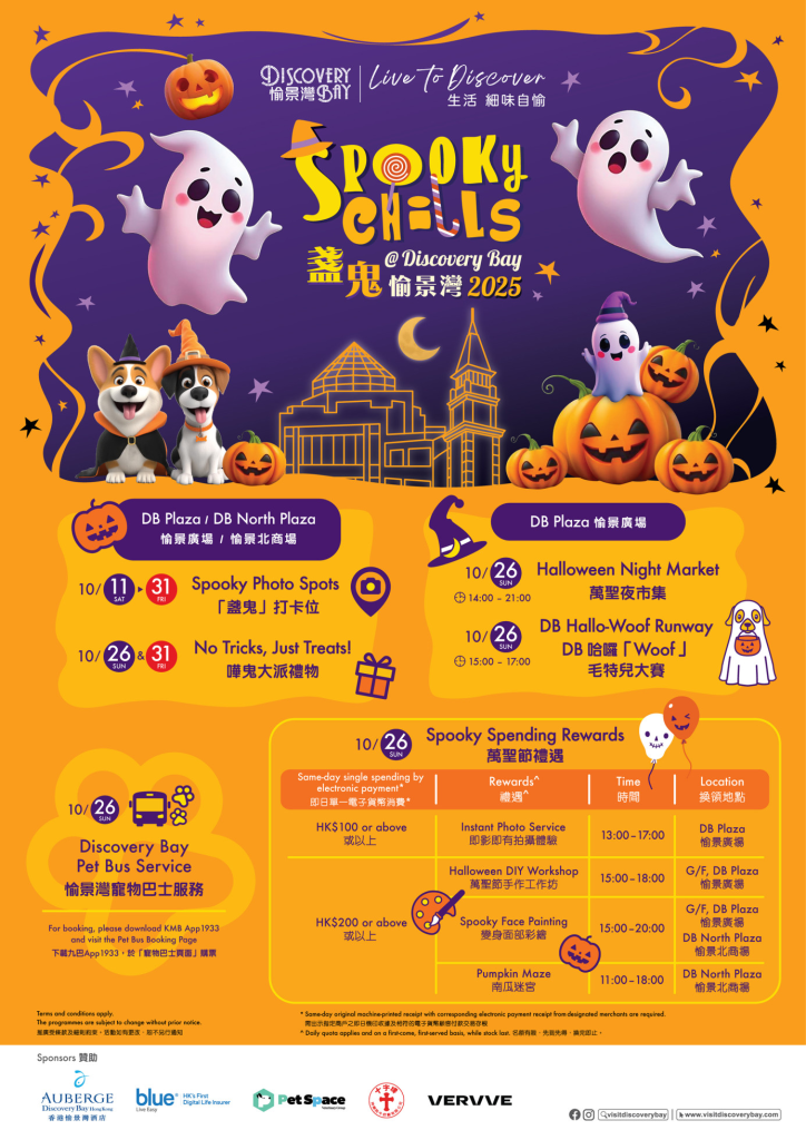Hong Kong Resort Company Limited (Hong Kong Resort) is thrilled to announce a series of exciting activities to celebrate this year’s Halloween! DB Plaza and DB North Plaza will be adorned with Spooky lighting and decorations, creating mysterious photo spots! Parents and Children looking to join the festive fun shouldn’t miss the annual “Discovery Bay Halloween Night Market”, which will feature around 60 unique stalls offering handcrafts, Halloween-themed accessories, and pet decorations! This year, Discovery Bay will also host the “Hallo-Woof Runway” Pet Costume Contest. Pet owners are welcome to register online to participate in this fun costume competition with their adorable furry friends, celebrating Halloween together!